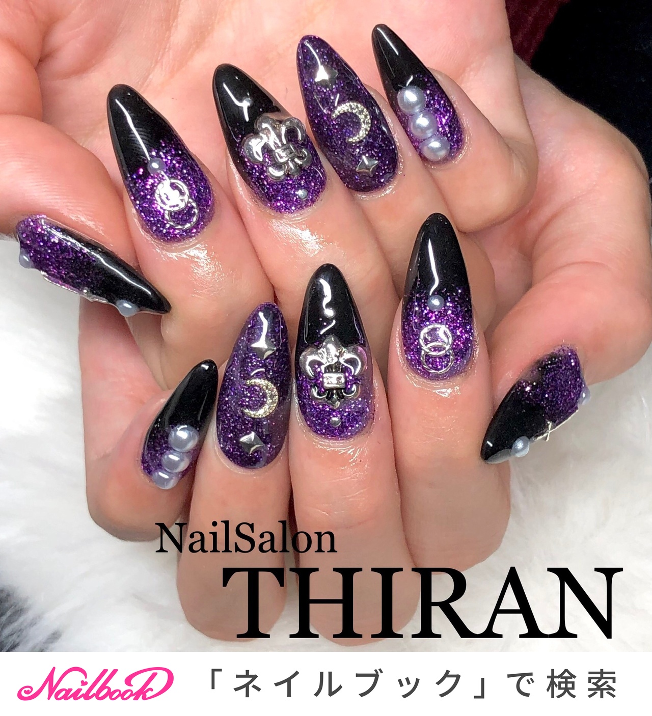 シャンテグラム V Twitter ネイル紹介 玉虫カラーのグラデーションネイル 黒と紫系の玉虫カラー 見る角度により色が美しく変化します 写真では分かりにくいですが 透明感のある紫の微粒子ラメも爪の根元に 六芒星とクロスがポイントです T