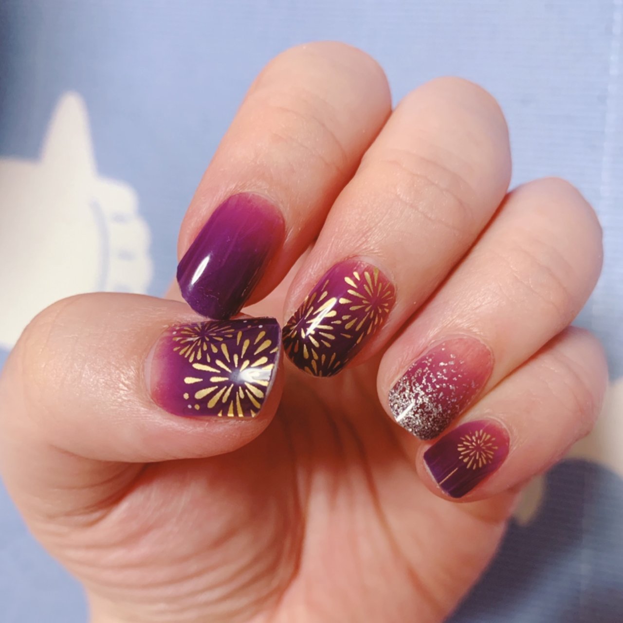 セルフジェルネイルで夏ネイル セリアジェルのスカイブルーとライトパープルでマグネットネイルと 涼しげシェルネイル Amy S Nail Journal 楽天ブログ